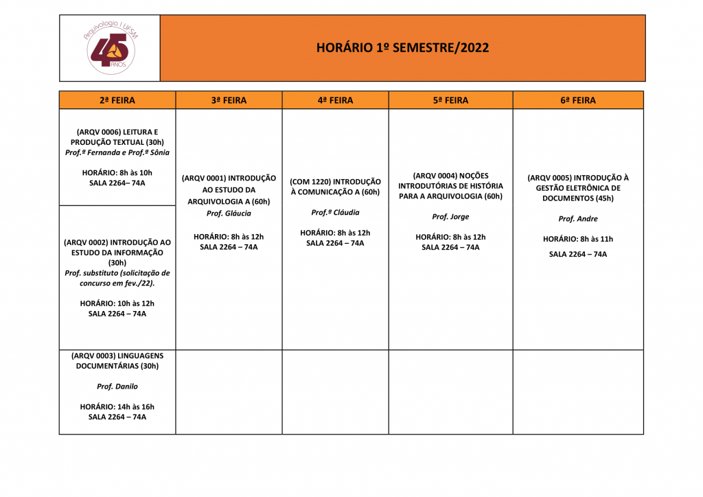 Quadro de oferta de disciplinas 2022-1