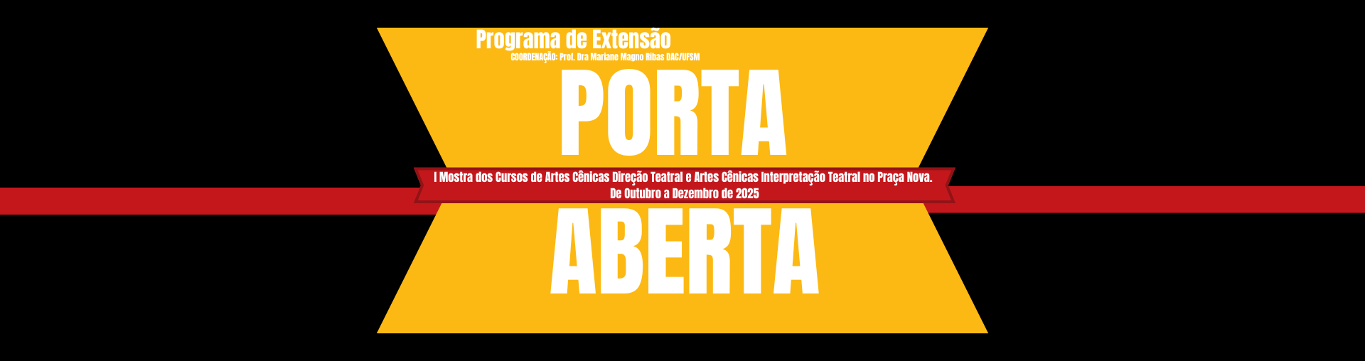 SELEÇÃO DE ESTUDANTES PARA ATUAREM COMO COLABORADORES/AS NODESCUBRA UFSM 2025Os Cursos de Artes Cênicas Direção Teatral e Artes Cênicas Interpretação Teatral tornam pública aseleção para estudantes colaboradores/as(auxiliares) durante o Descubra UFSM [...]