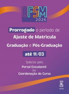 Confira AQUI o guia com informações sobre serviços institucionais como UFSM Digital, Restaurante Universitário, e-mail institucional, linhas de ônibus, Benefício Socioeconômico, saúde e apoio psicossocial. Mais sobre Recepção Estudantil: AQUI