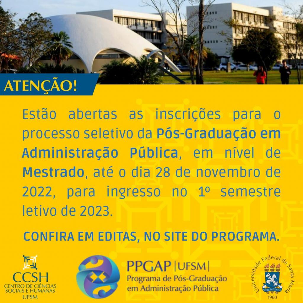 Edital seleção Mestrado em Administração Pública da UFSM – 2022/2 com Ingresso em 2023/1