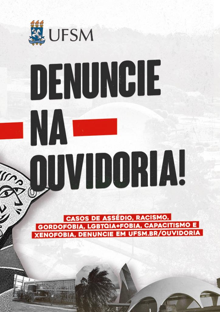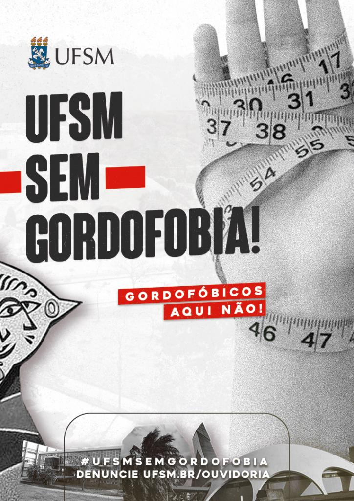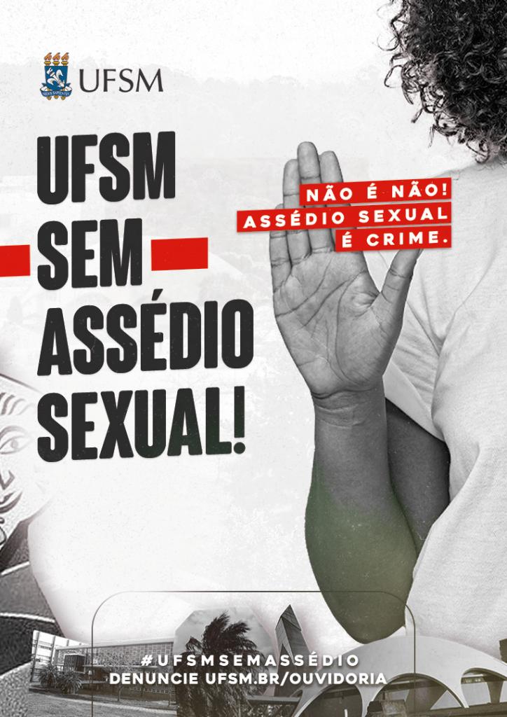 UFSM Sem Assédio: a campanha UFSM Sem está sendo ampliada: Sem Assédio, Sem Gordofobia, Sem LGBTQIA+Fobia, Sem Racismo, Sem Capacitismo, Sem Xenofobia. Já existem materiais disponíveis, inclusive materiais novos para redes sociais.