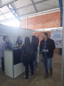 No estande da Contábeis não poderia ser diferente, de modo que os visitantes que por lá passaram, tiveram a oportunidade de conversar com acadêmicos e professores do curso, no intuito de conhecer melhor tudo aquilo que envolve a grade curricular desta graduação, bem como os possíveis campos de atuação para futuros contadores.