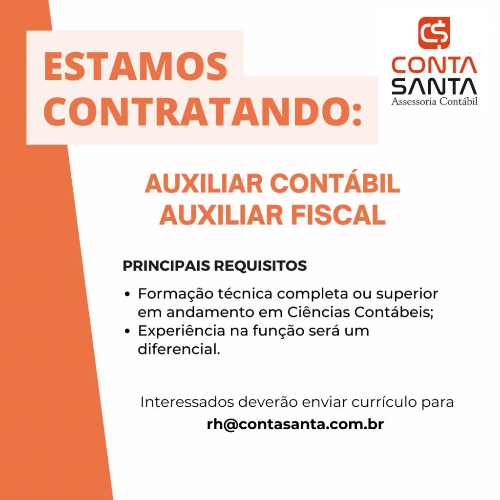Oportunidade para Auxiliar Contábil e Auxiliar Fiscal