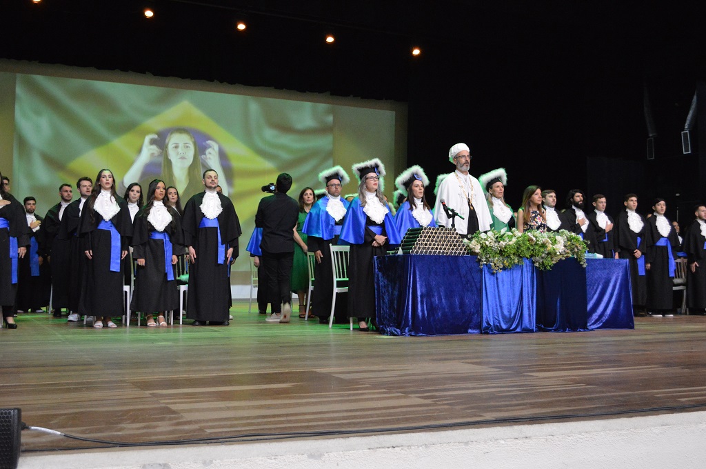 Por fim, após o discurso de oradores e paraninfa, o Magnífico Reitor da UFSM, Professor Luciano Schuch, fez a sua fala enaltecendo a trajetória dos formandos até chegarem a este momento, o que só foi possível com o sacrifício de muitos. Cada um leva como legado o conhecimento adquirido nesta que é uma das melhores instituições públicas de ensino superior do país. de modo que agora é chegada a hora de retribuirem, assumindo o compromisso e a responsabilidade como profissionais de ajudarem a sociedade no intuito de tornar o mundo um lugar melhor.
