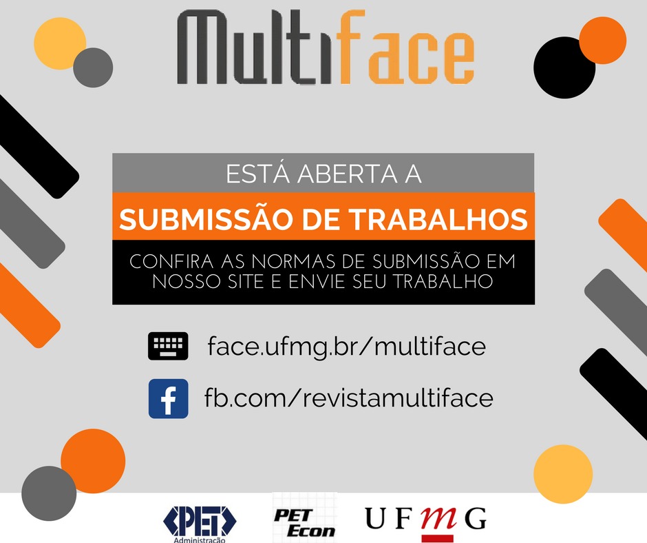 Além de artigos, aceitamos resenhas, textos introdutórios e cases. Confira os detalhes no site: http://revistas.face.ufmg.br/index.php/multiface/index