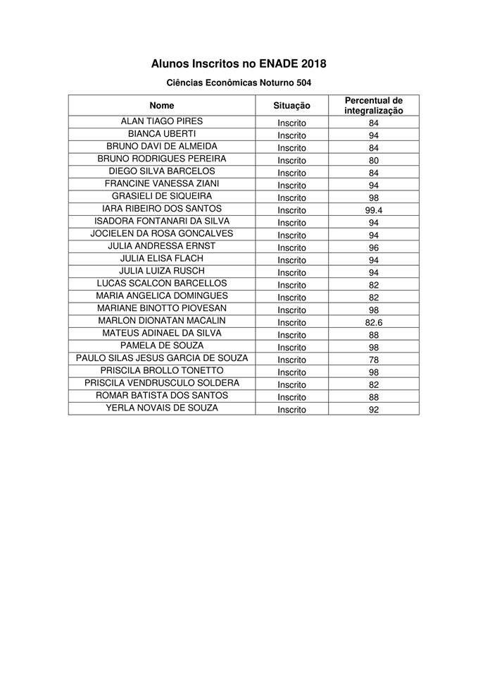 ALUNOS INSCRITOS – ENADE 2018