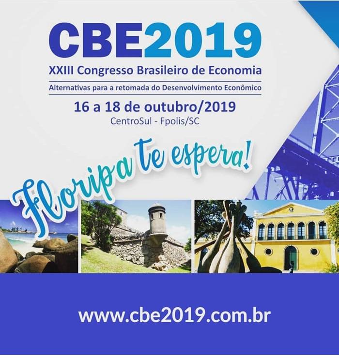 Florianópolis/SC, considerada uma das capitais com melhor qualidade de vida do Brasil, vai sediar entre os dias 16 e 18 de outubro de 2019, o maior evento nacional que envolve economistas na discussão de assuntos de grande relevância para a sociedade, o XXIII CONGRESSO BRASILEIRO DE ECONOMIA – CBE 2019. O tema central em debate será: “Alternativas para a retomada do Desenvolvimento Econômico”.