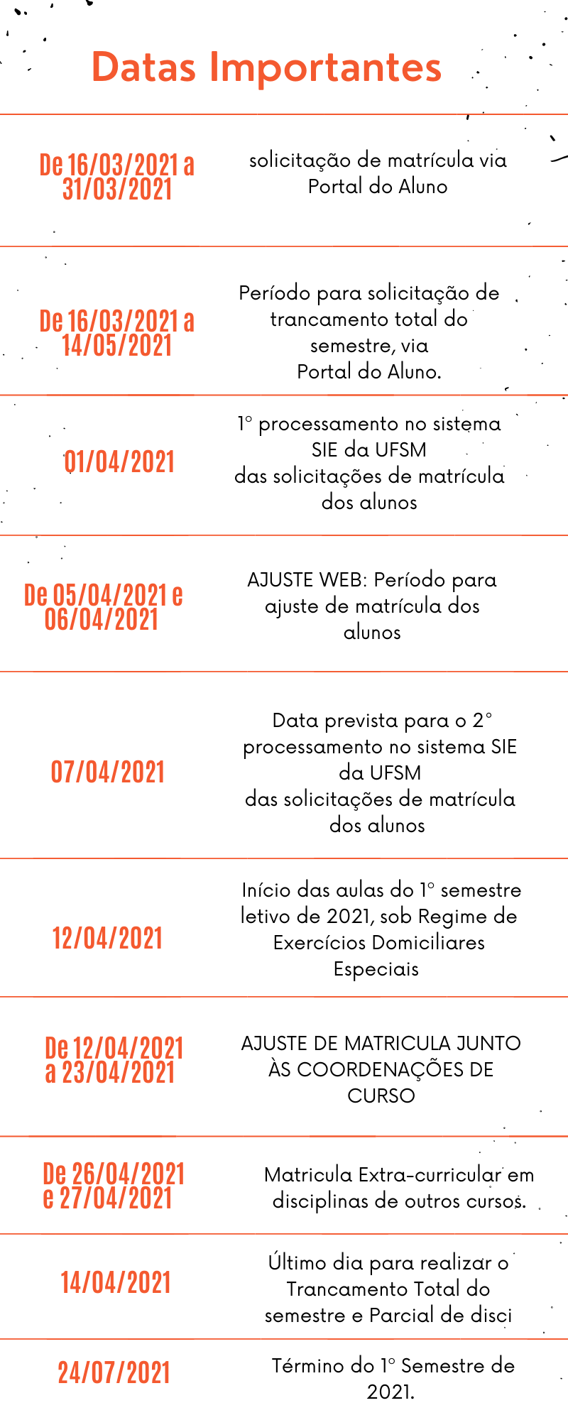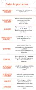 Datas Importantes para o 1º sem. de 2021