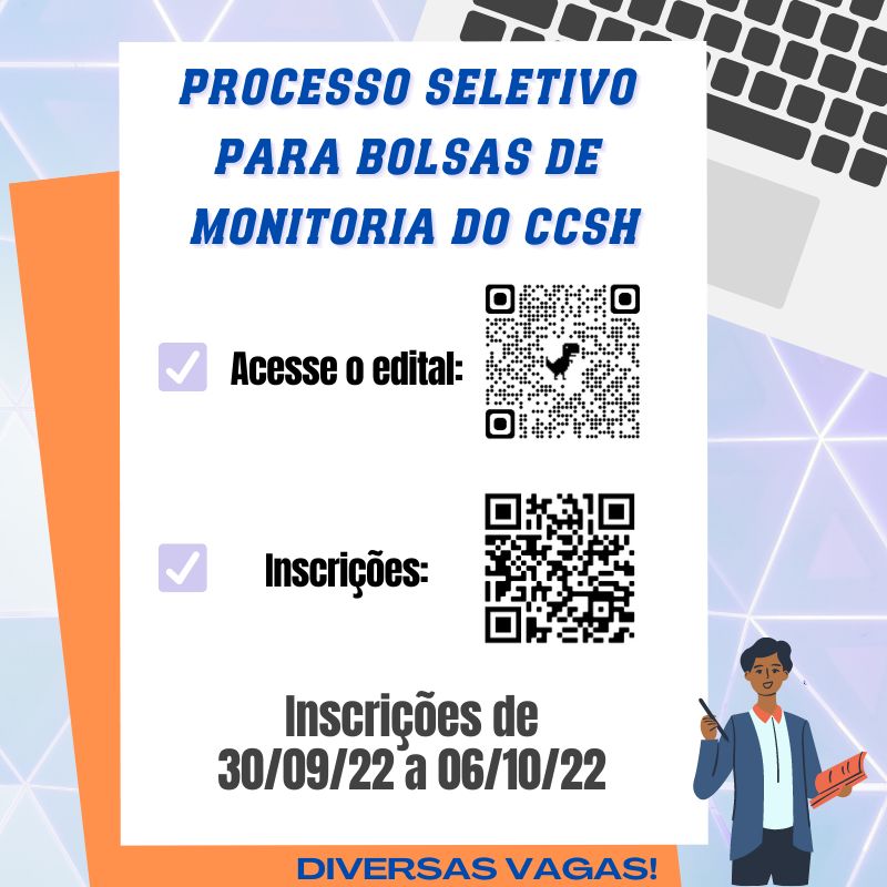 Publicado Edital de Bolsas de Monitoria do CCSH – Semestre 2022/2