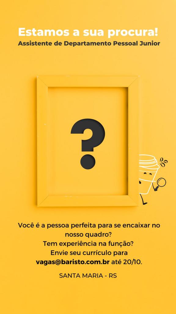 Vaga para Assistente de Departamento Pessoal na Baristo