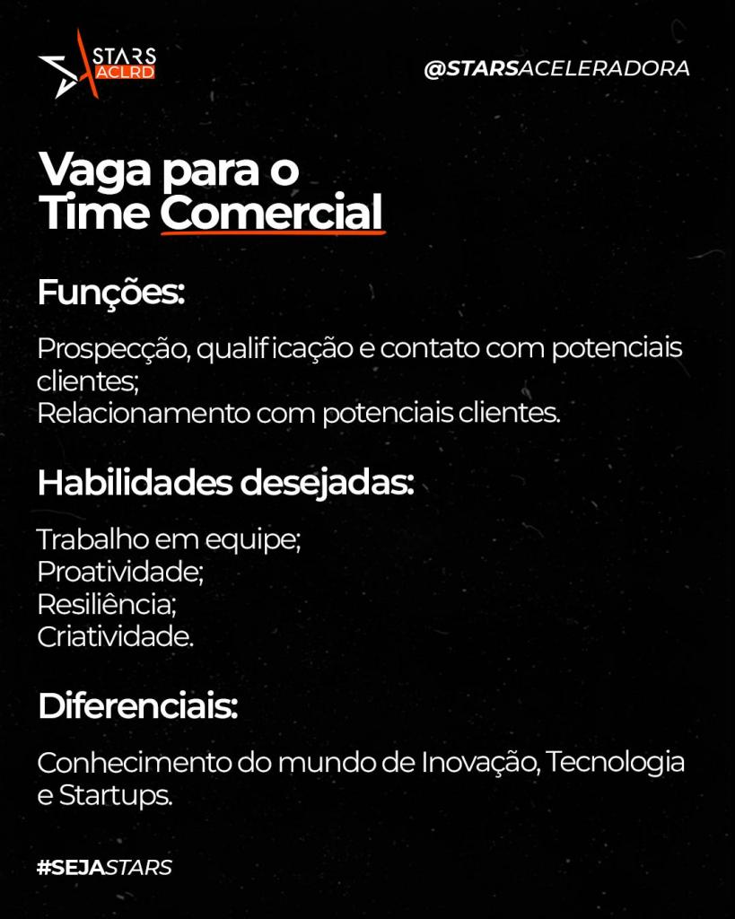 Atividades a serem preenchidas na área Comercial com carga horária de 25h a 40h/semana.