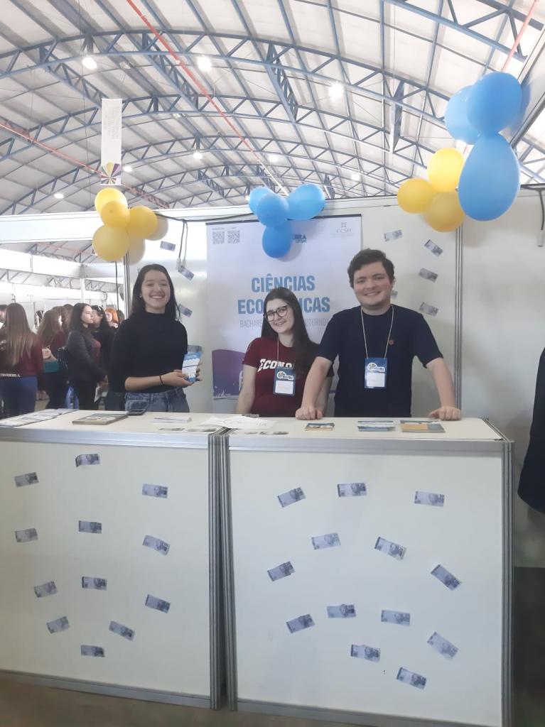 No estande da Economia não poderia ser diferente, de modo que os visitantes que por lá passaram, tiveram a oportunidade de conversar com acadêmicos e o coordenador do curso, no intuito de conhecer melhor tudo aquilo que envolve a grade curricular desta graduação, bem como os possíveis campos de atuação para futuros economistas.