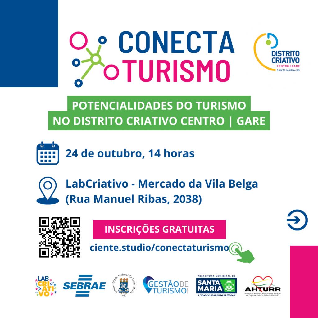O Conecta Turismo é um evento promovido pelo Curso de Gestão de Turismo da UFSM, LabCriativo, Sebrae e Prefeitura Municipal de Santa Maria