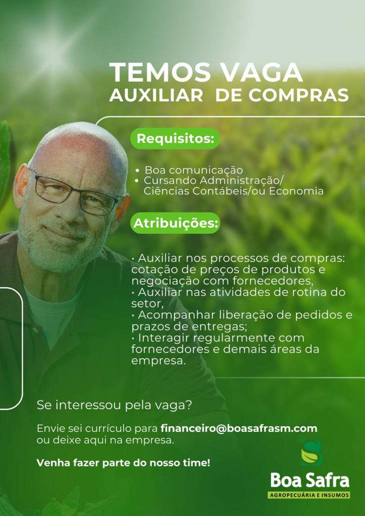 Vaga para auxiliar de compras – Empresa Boa Safra