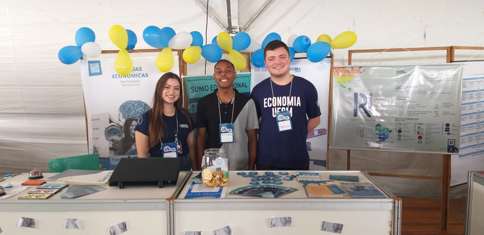 No estande da Economia não poderia ser diferente, de modo que os visitantes que por lá passaram, tiveram a oportunidade de conversar com acadêmicos e o coordenador do curso, no intuito de conhecer melhor tudo aquilo que envolve a grade curricular desta graduação, bem como os possíveis campos de atuação para futuros economistas.