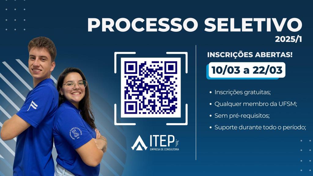 Você que está do outro lado da tela, que tem fome de conhecimento e quer ser protagonista da sua jornada, te convido a participar do Processo Seletivo da ITEP Jr. e fazer parte de uma vivência empresarial que vai mudar a sua vida! 🚀🚀