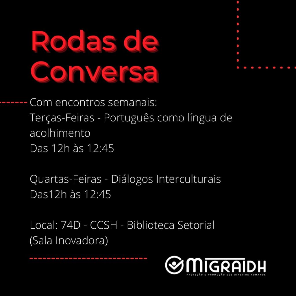 Convida os(as) estudantes migrantes e refugiados(as) da UFSM a participarem das nossas Rodas de Conversa Migraidh, uma das ações de integração do projeto de extensão.