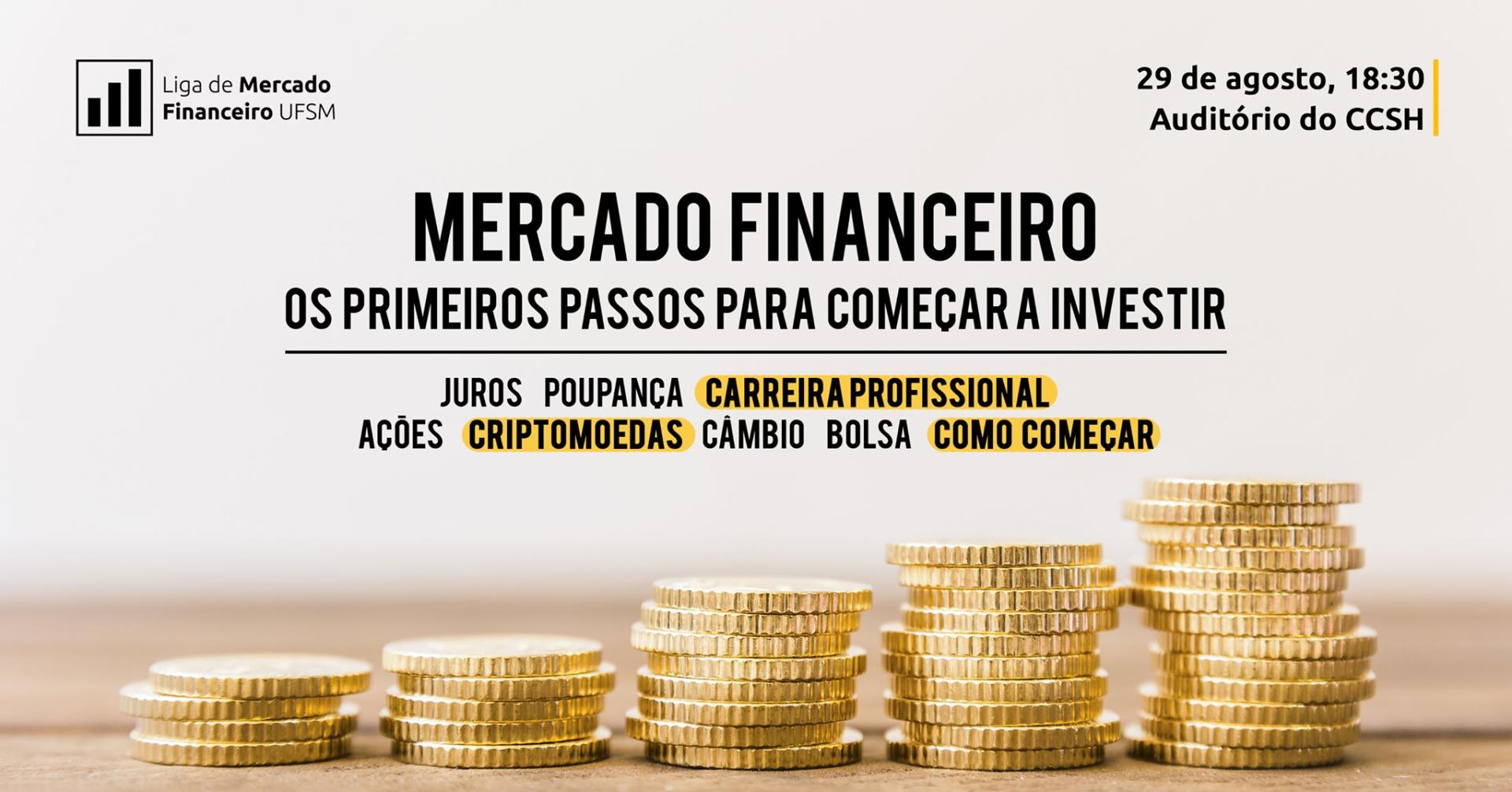 A Liga de Mercado Financeiro UFSM, com o propósito de difundir conhecimento relacionado a investimentos e mercado financeiro no meio acadêmico, apresenta seu primeiro evento, com o tema: “OS PRIMEIROS PASSOS PARA COMEÇAR A INVESTIR”