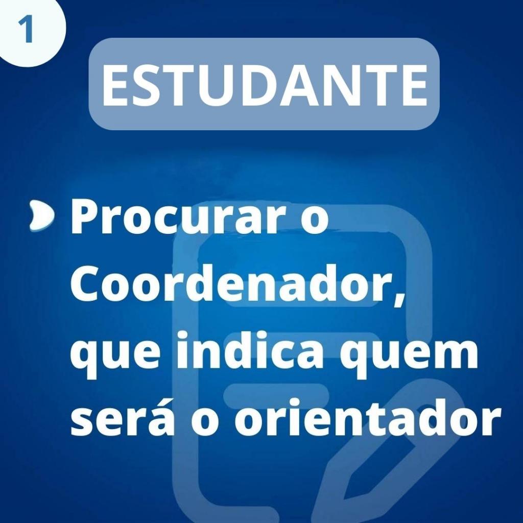 1. Procurar a Coordenação do Curso, antes de formalizar a adesão ao estágio, para verificar a compatibilidade com a área de formação e para que o Coordenador de Ciências Econômicas indique o nome do(a) professor(a) orientador(a). O nome do orientador deverá constar no TERMO DE COMPROMISSO de estágio.