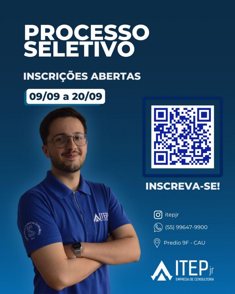 As inscrições do nosso Processo Seletivo se encerram dia 20/09. Você não vai ficar de fora, não é mesmo? Para se inscrever, clique aqui. Acompanhe nosso Instagram @ITEPJR e fique por dentro!