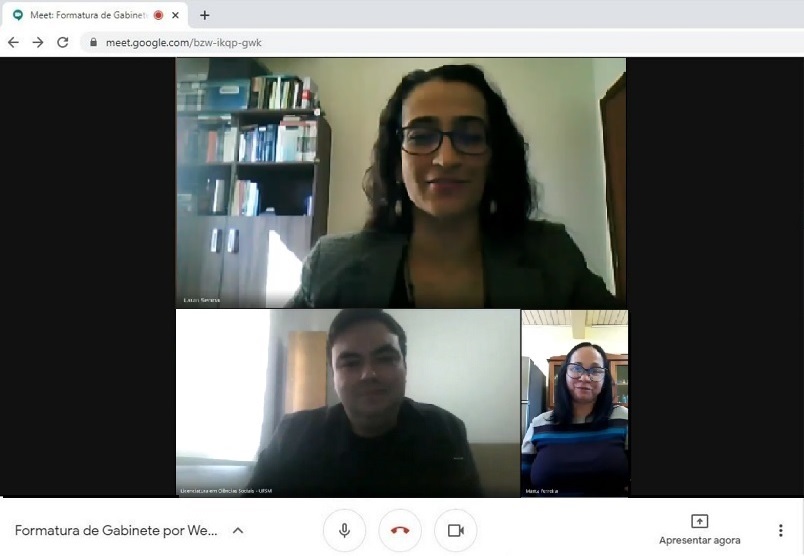Na sexta-feira (30), foi realizada mais uma Formatura de Gabinete da 15ª Turma do Curso de Licenciatura em Ciências Sociais da Universidade Federal de Santa Maria. A colação de grau de Marta Ferreira Soares aconteceu por webconferência via Google Meet, seguindo a Instrução Normativa 05/2020 da Prograd. O evento teve a participação da Coordenadora da Licenciatura, Professora Laura Senna Ferreira, e o Secretário Administrativo do curso, Tiago Moraes Trindade. A Universidade Federal de Santa Maria felicita a mais nova Licenciada em Ciências Sociais por esta conquista e deseja uma carreira de sucesso à concluinte