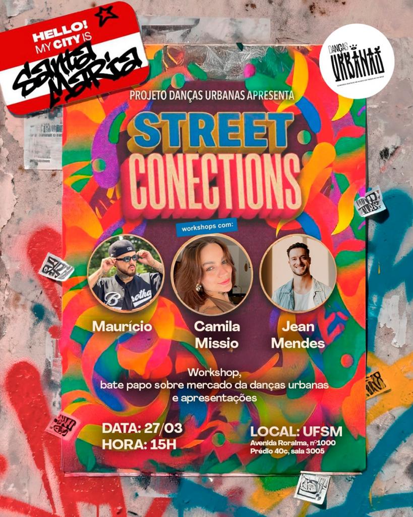 A Universidade Federal de Santa Maria recebe na sexta-feira, dia 27 de março de 2026, mais uma etapa presencial do projeto Danças Urbanas: Conexões Produtivas no Mundo do Trabalho em Rede. O Street Connections é um encontro pensado para quem vive, pesquisa, trabalha ou se interessa pela dança urbana.