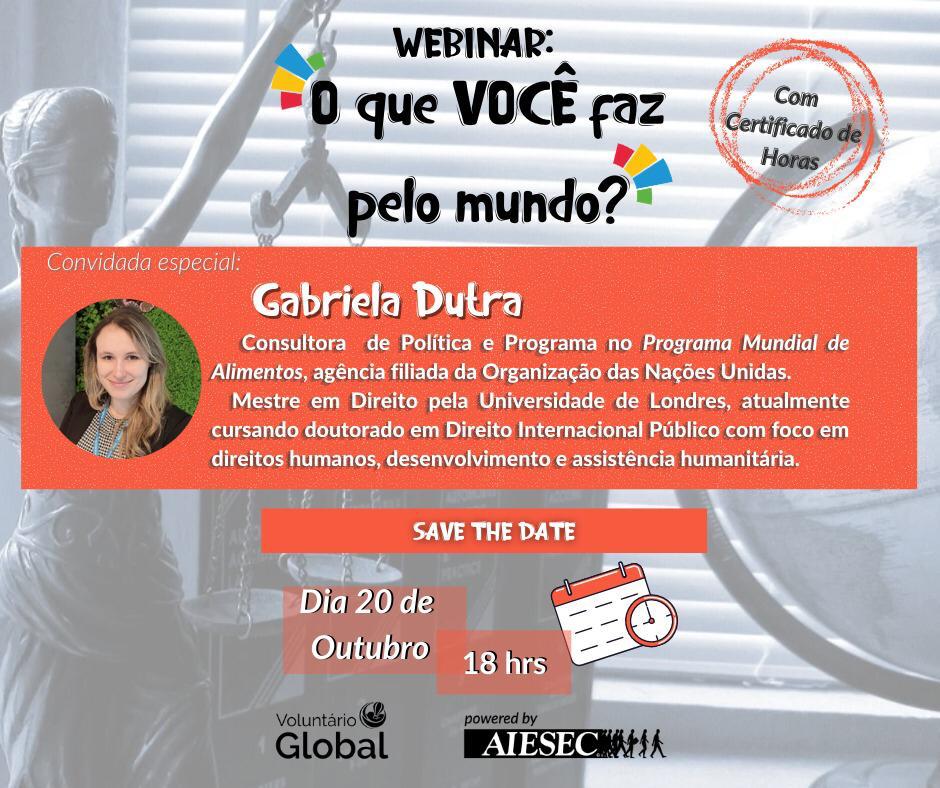 Em comemoração a data, nós, da AIESEC em Santa Maria, realizaremos um webinar com convidadas especiais para discutir tópicos como: carreira, trajetória em organizações internacionais e o nosso papel como cidadãos globais.