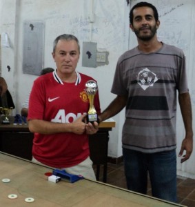Dentro do projeto de renovação de atletas no futebol de mesa do NUFUME, junto à PRAE e à Diretoria da CEU II, surge mais um atleta, que leu sobre o Torneio Início nas páginas do Portal da UFSM e se deslocou do centro até o Campus para acompanhar e dar os primeiros toques nas arenas do Núcleo. Trata-se do acadêmico de Ciências Biológicas Jeronimo Schmidt Machado, que foi muito bem recepcionado pela equipe e teve a assessoria do veterano José Ademir, que em duas partidas amistosas mostrou um pouco da regra gaúcha, praticada no local. Mais um fisgado pela paixão do futebol de mesa.