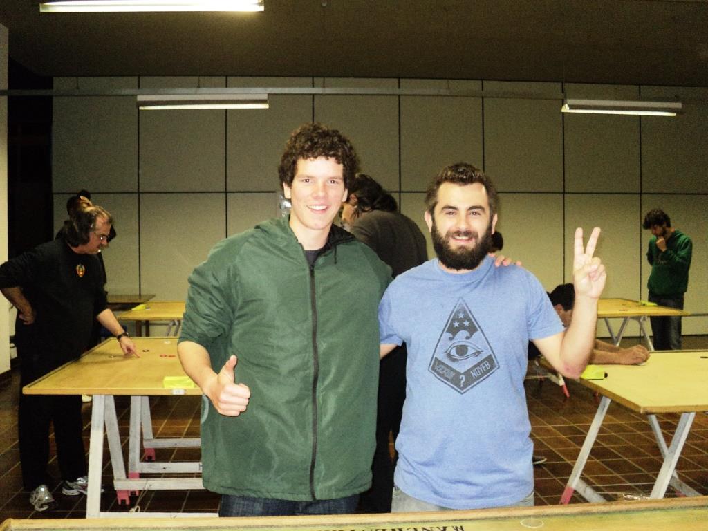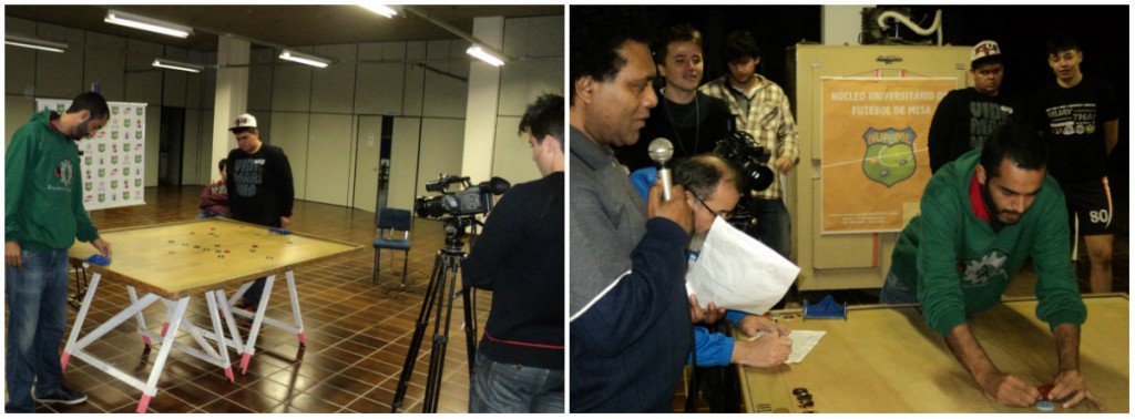 Nesta semana recebemos a visita de um grupo de alunos que se hospedavam na União, local de dormitórios de estudantes, e que estavam de passagem pelo Rio Grande do Sul, participando do trabalho de campo “Das Gerais aos Campos Gaúchos”, comandado pelo professor Roberto Barbosa Castanho. Meninos e meninas do terceiro semestre de Geografia da Universidade Federal de Uberlândia-MG. Conrado Maciel, natural de São José dos Campos e Iru Iakowsky, de Ibiúna, São Paulo, participantes do projeto, experimentaram o futebol de mesa e gostaram bastante.