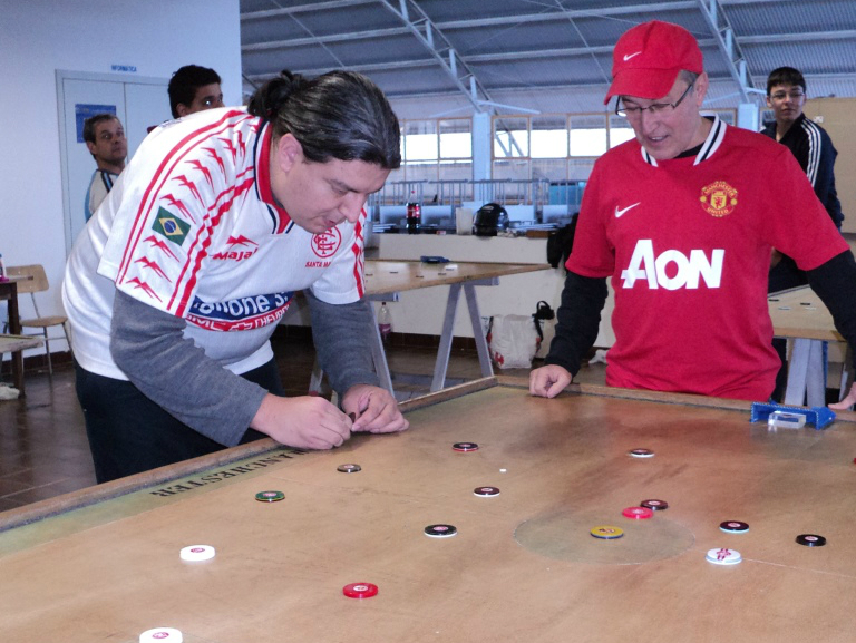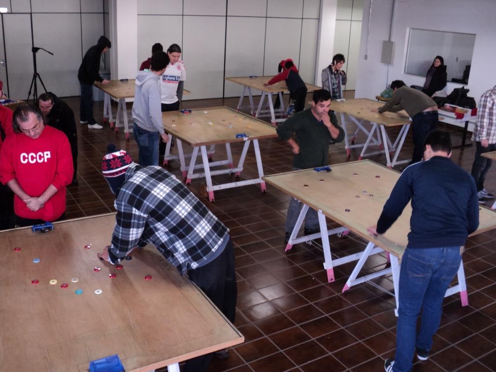O domingo foi de parcerias na União Universitária, no Campus da UFSM, quando mais um evento organizado pelo Núcleo Universitário de Futebol de Mesa aconteceu. A fria manhã foi aquecida com boas doses de chá com biscoitos e quatro grupos de cinco atletas, num total de 20 componentes.