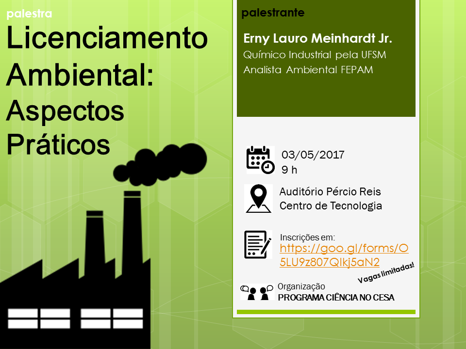 Palestra “Licenciamento Ambiental: aspectos práticos”, promovida pelo PROGRAMA CIÊNCIA NO CESA – GAP n° 042693