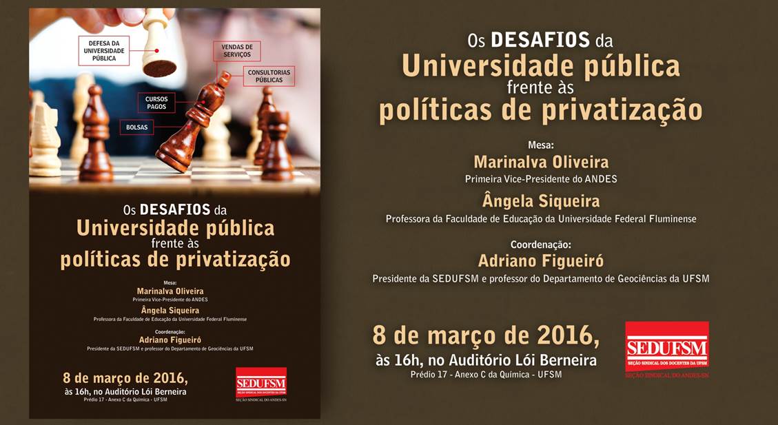 Debate sobre “Os Desafios da Universidade pública frente às políticas de privatização”.