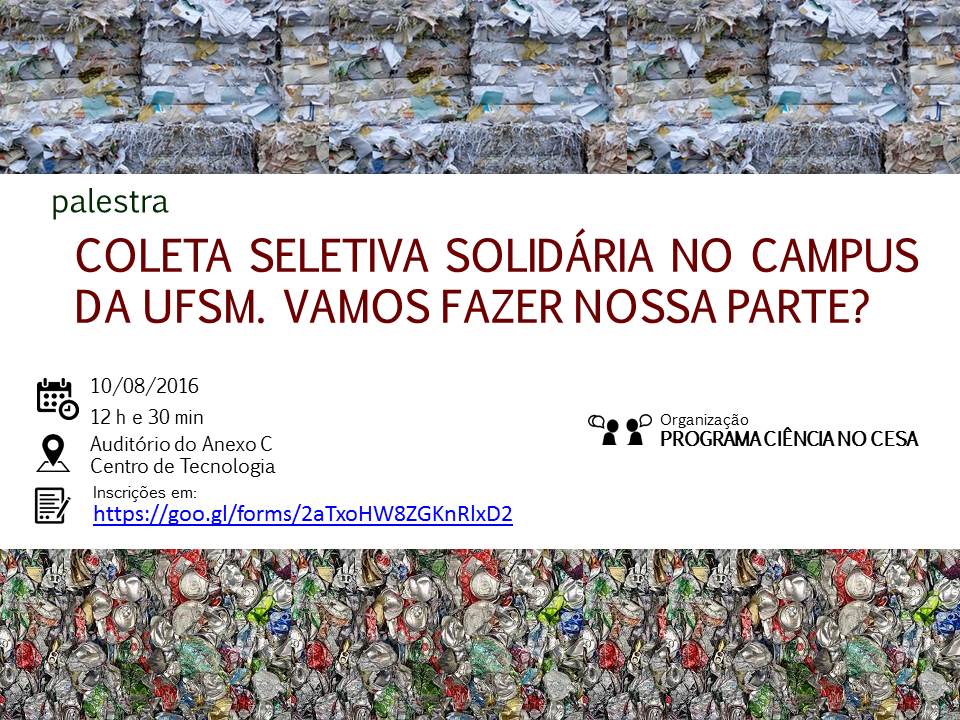 Palestra: “Coleta Seletiva no Campus da UFSM. Vamos fazer nossa parte?”