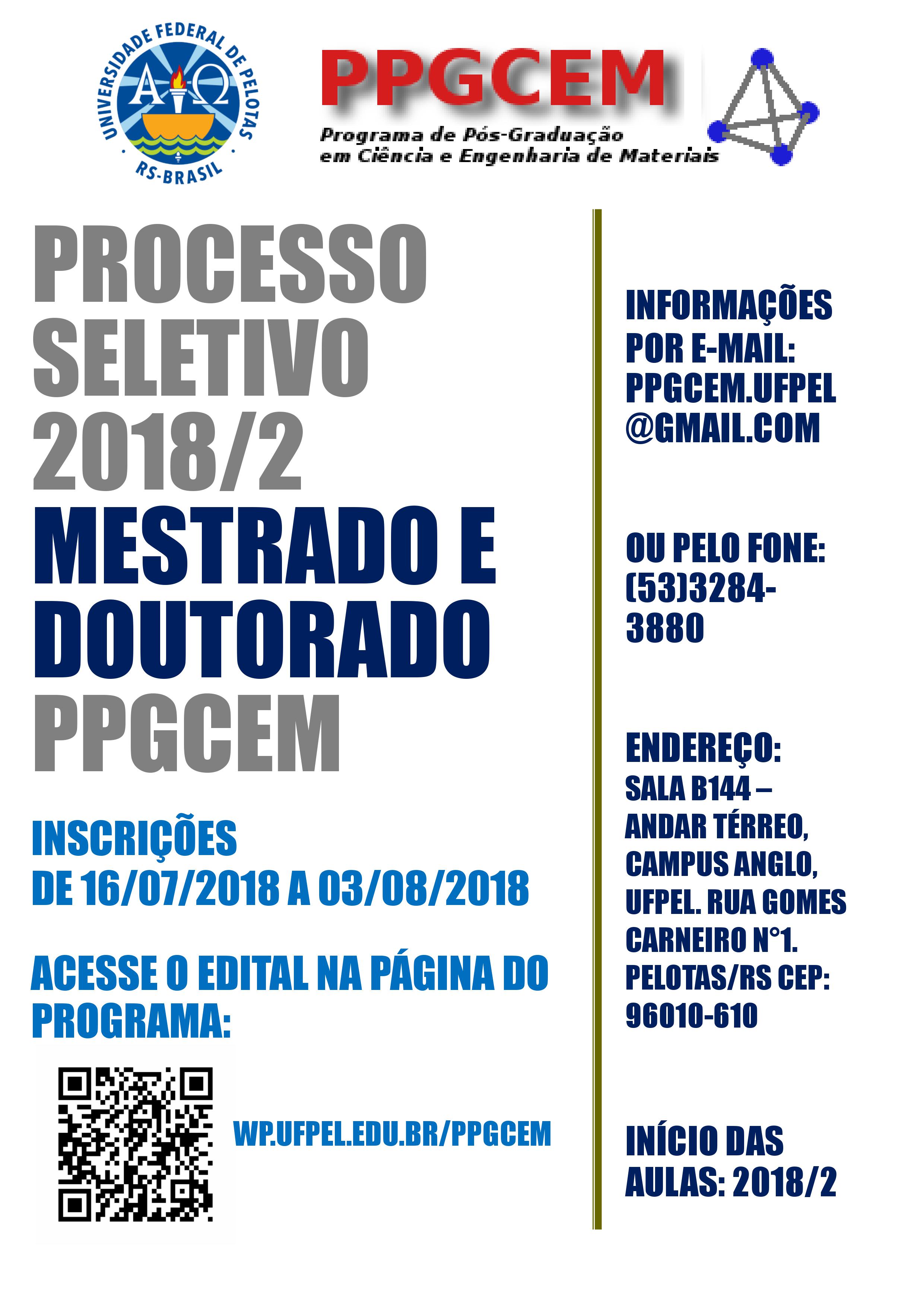 Processo Seletivo para Mestrado e Doutorado – PPG em Ciência e Engenharia de Materiais/UFPel.