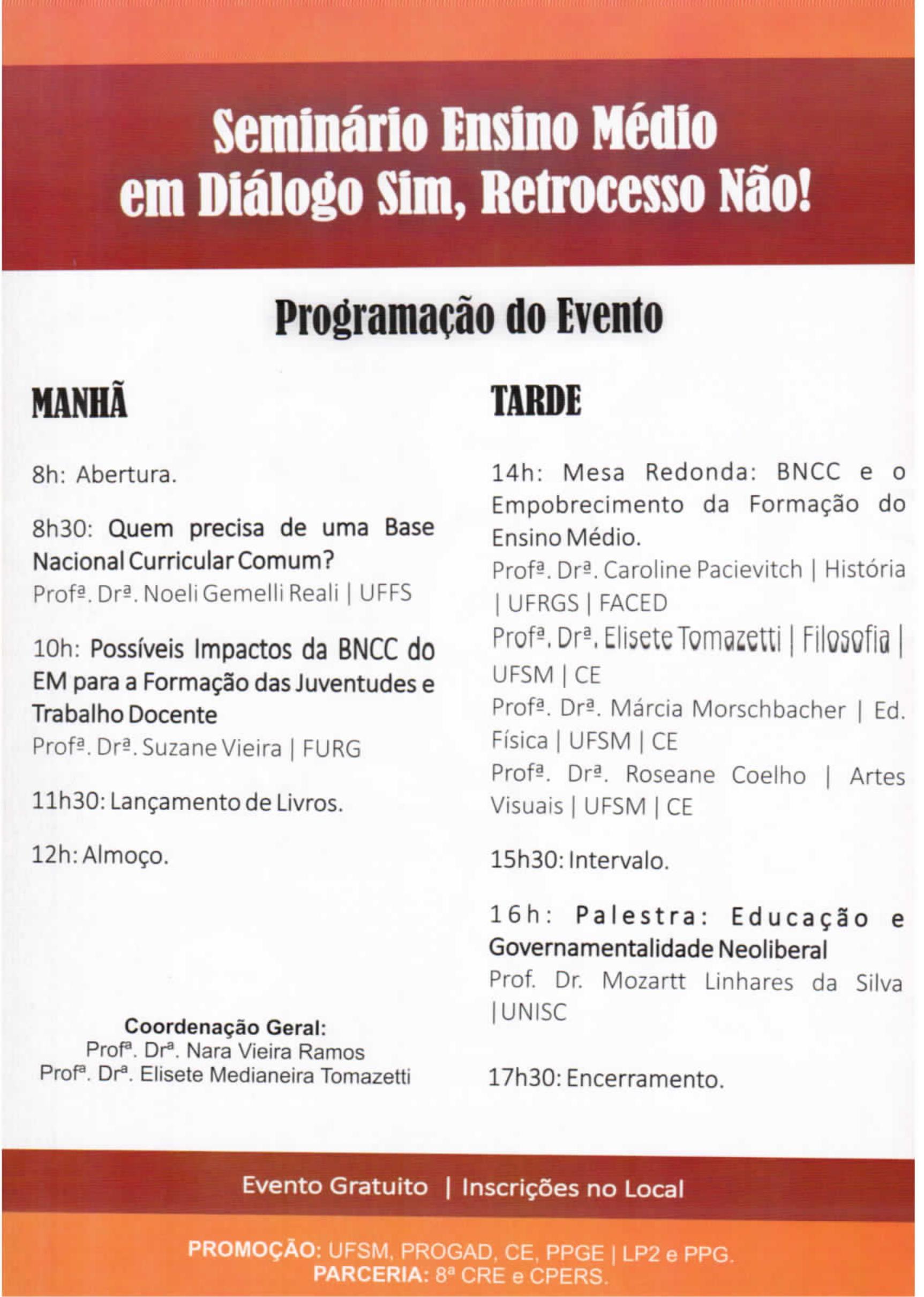 “Seminário Ensino Médio em Diálogo Sim, Retrocesso Não!”.