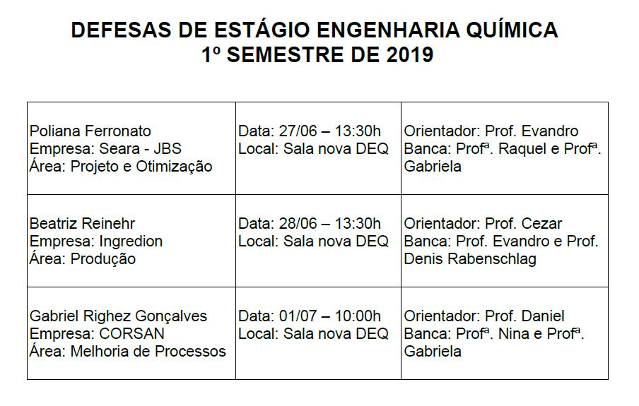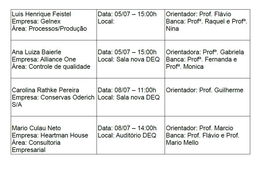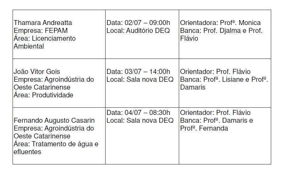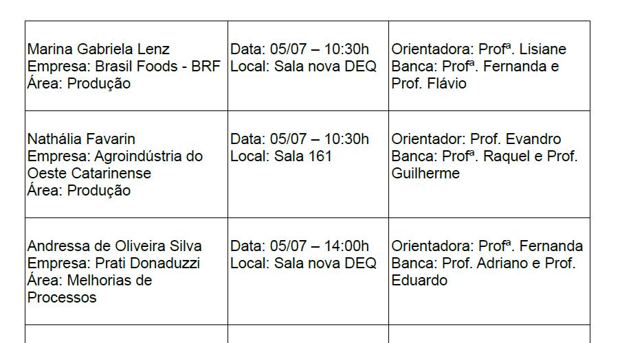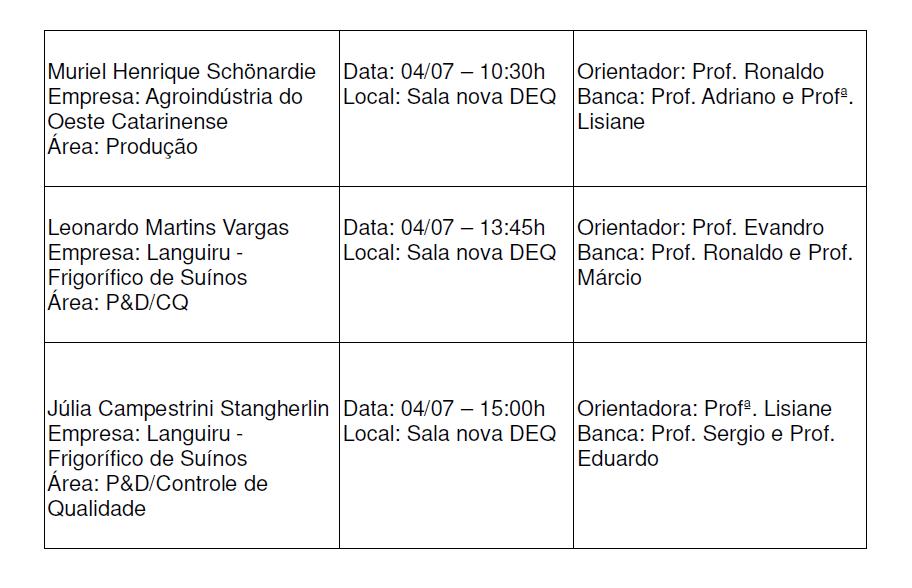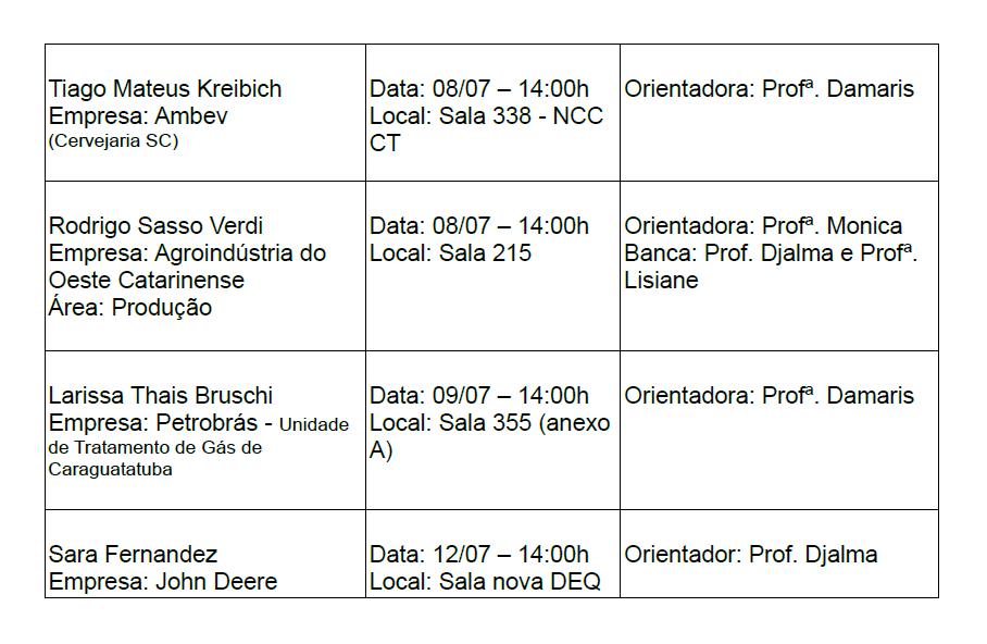 Divulgação de defesas de Estágio
