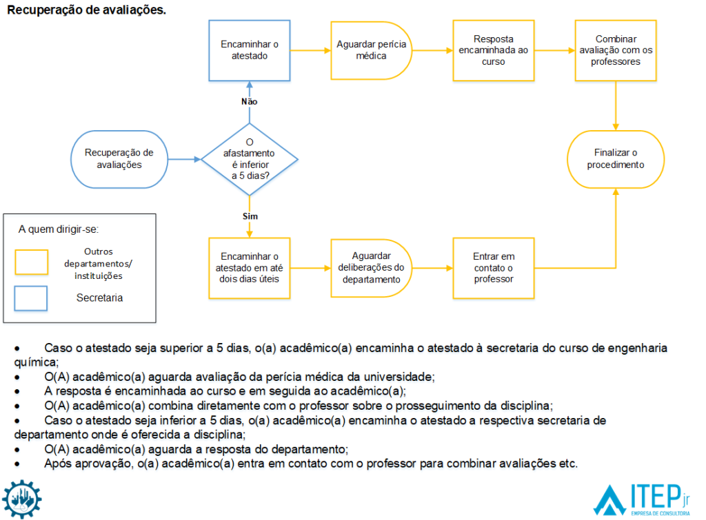 Caso o(a) aluno(a) tenha perdido atividade avaliativa no período do atestado inferior a 5 dias, é necessário abrir um processo do tipo documental Processo de recuperação de avaliação de aluno de graduação (125.31).
