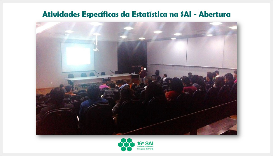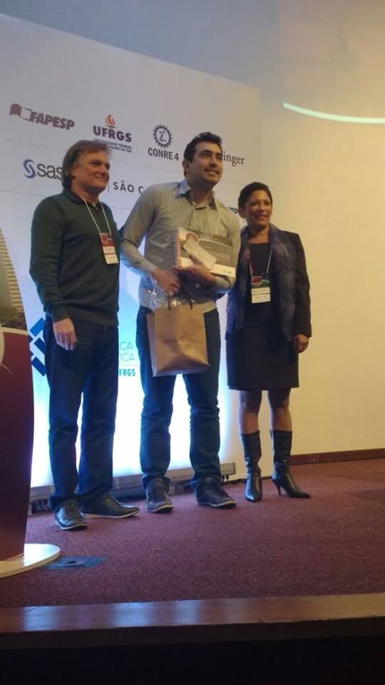 Premiação do aluno Diego Canterle – 1° lugar no concurso de iniciação científica da Associação Brasileira de Estatística (ABE) durante o Simpósio Nacional de Probabilidade e Estatística (SINAPE) – 2016