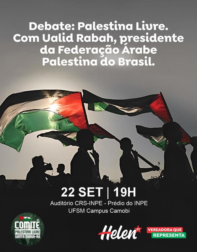 O mandato da Vereadora Helen Cabral, em parceria com o Comitê Palestina Livre – Santa Maria, tem a honra de convidar sua instituição para o