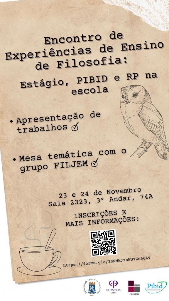 O referido evento é um espaço de acolhimento e divulgação dos trabalhos efetuados pelxs estudantes do curso de licenciatura em filosofia da UFSM que elaboraram atividades para alunxs das escolas públicas de Santa Maria. Conta também com a participação de pesquisadores do ensino de filosofia. Dessa maneira, o evento pretende propagar as atividades desenvolvidas pelos estudantes para o restante da comunidade filosófica do departamento, tornar informações sobre o funcionamento de bolsas, estágios e pesquisas em relação ao ensino de filosofia evidentes e acessíveis aos estudantes e reafirmar a importância da experiência docente na formação do(a) professor(a) filósofo(a).
