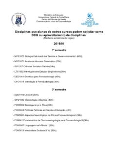 Disciplinas do Curso de Fonoaudiologia que podem ser usadas como DCG ou para aproveitamento de disciplinas por alunos de outros cursos