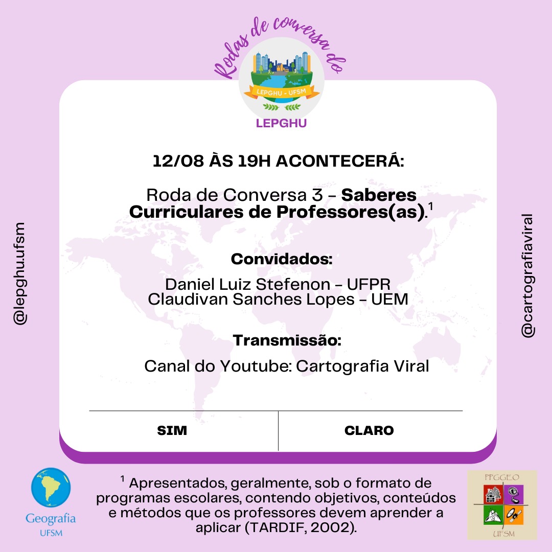 O tema da mesa 3 será “Saberes Curriculares de Professores”, os quais são apresentados, geralmente, sob o formato de programas escolares, contendo objetivos, conteúdos e métodos que os professores devem aprender a aplicar (TARDIF, 2002).