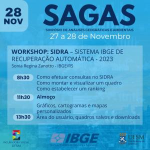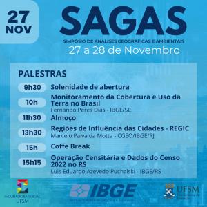 A Incubadora Social juntamente com o IBGE Santa Maria promove, entre os dias 27 e 28 de novembro na UFSM, o 1º SIMPÓSIO DE ANÁLISES GEOGRÁFICAS E AMBIENTAIS – SAGAS.