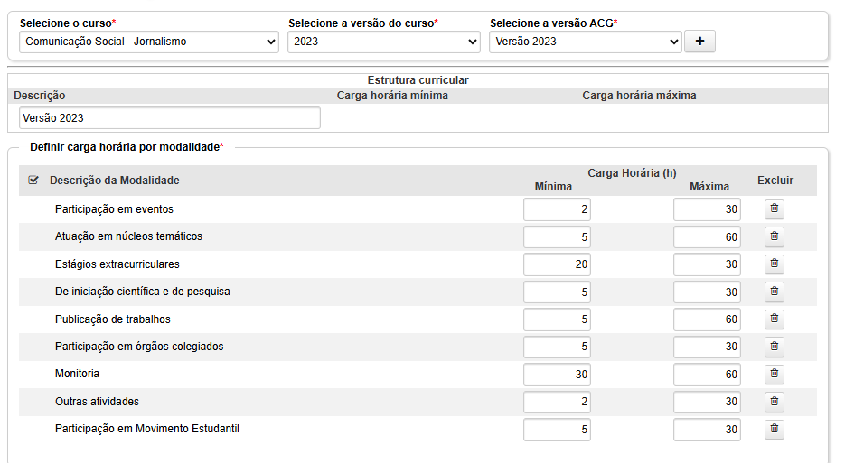 Considerando que para a integralização curricular do Curso de Jornalismo, o/a estudante deverá perfazer no mínimo 60 horas de ACGs;