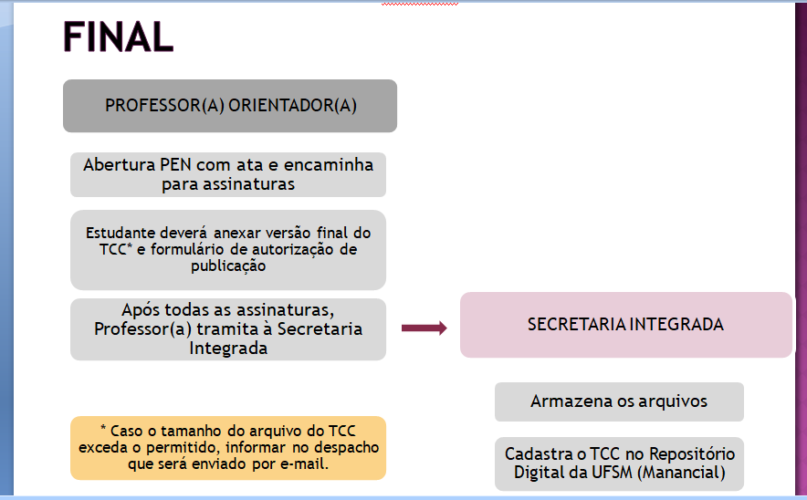 A tramitação dos TCCs e TFGs devem seguir o seguinte fluxo: