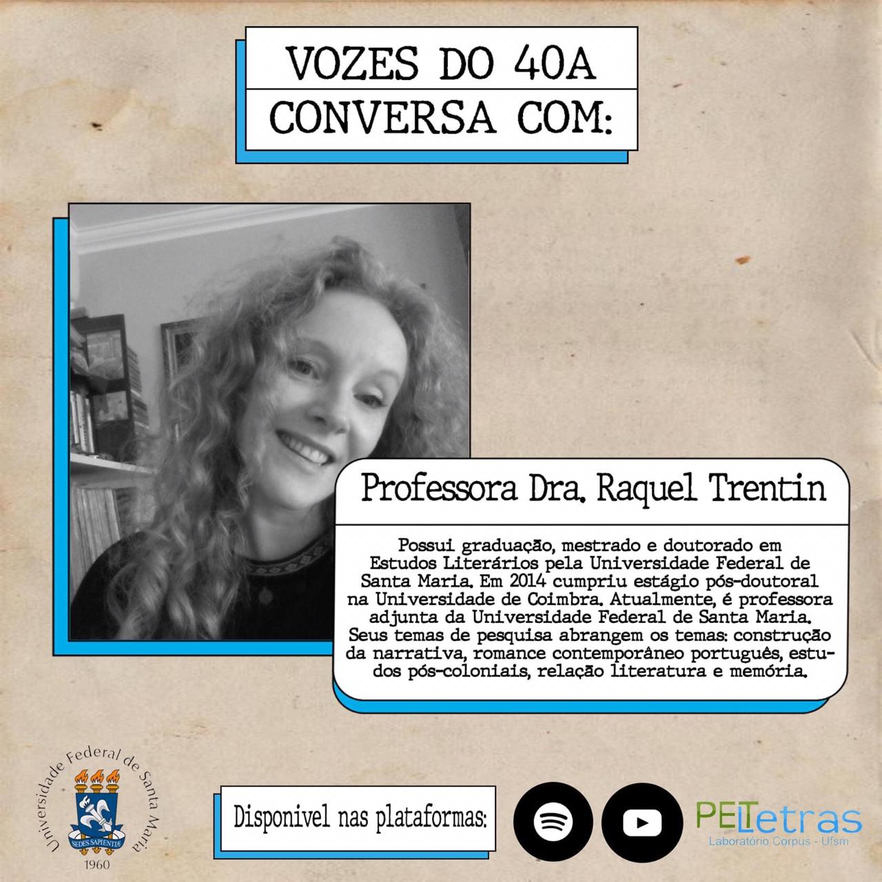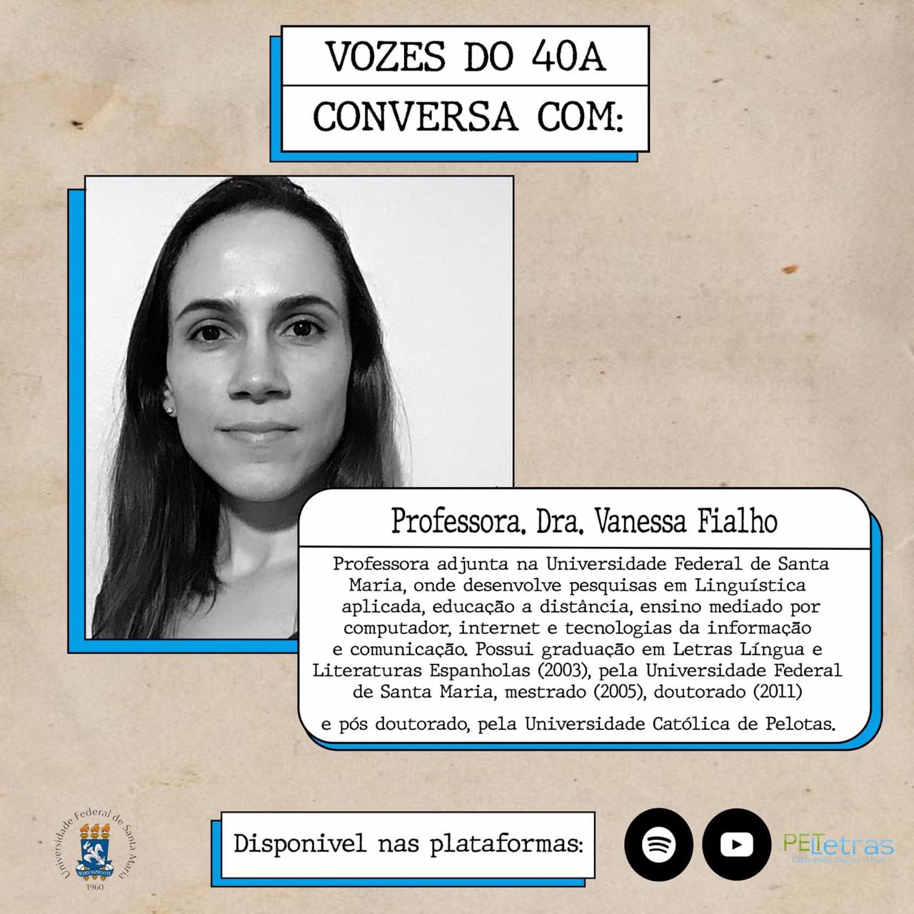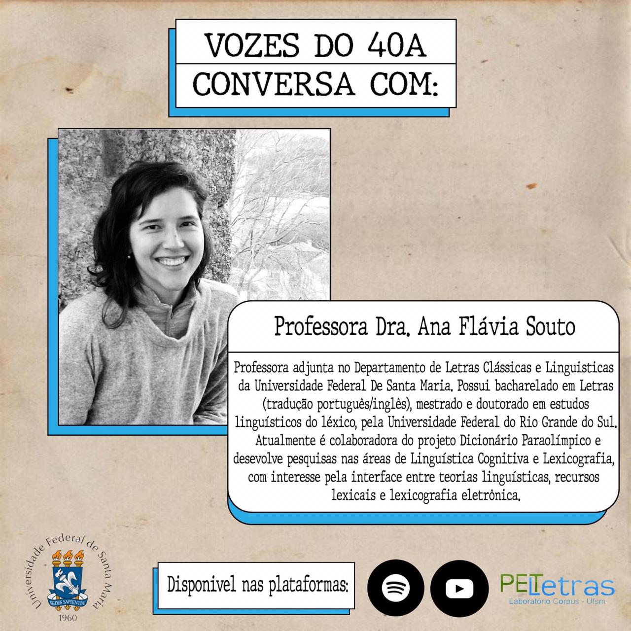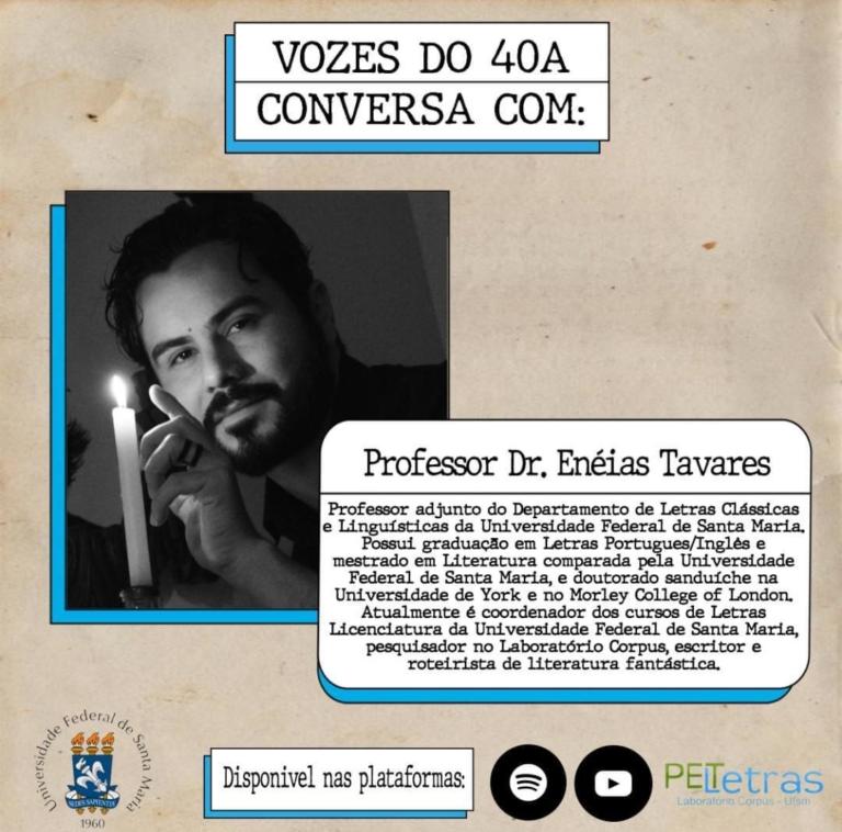 O podcast Vozes do 40A é uma produção do Programa de Educação Tutorial (PET Letras), da Universidade Federal de Santa Maria (UFSM). O objetivo do podcast é integrar os graduandos e os professores dos cursos de Bacharelado e Licenciatura em Letras, por meio de uma conversa informal, que versa não só sobre a produção acadêmica do professor, mas também sobre seus interesses extra sala de aula.