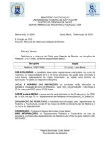 memorando nº 01-2020 – Edital de Monitoria Pediatria I