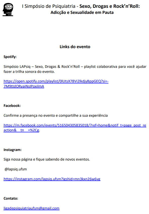 I Simpósio de Psiquiatria – Sexo, Drogas e Rock’n’Roll: