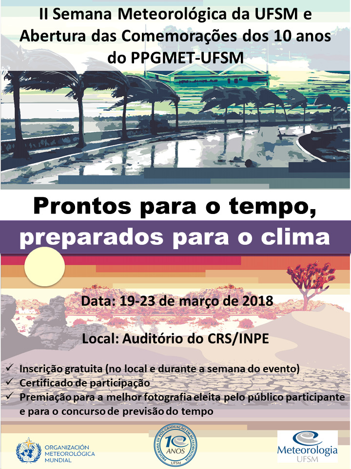Palestra: “Um relato sobre a Meteorologia na Europa” por Dr. Luca Mortarini (Prof. Visitante PPGMET) | Dia Meteorológico Mundial – OMM: “Prontos para o tempo, preparados para o clima” por Prof. Ernani e Profa. Nathalie (CCNE/UFSM) |