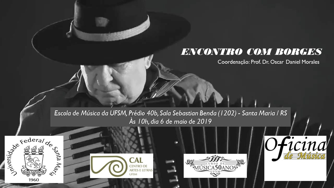 No dia 06 de maio ocorrerá um encontro com o ex-aluno do curso de música da UFSM e hoje um importante nome da música tradicional gaúcha. Luiz Carlos Borges estará presente oferecendo uma roda de conversa para tratar de variados temas ligados à música.